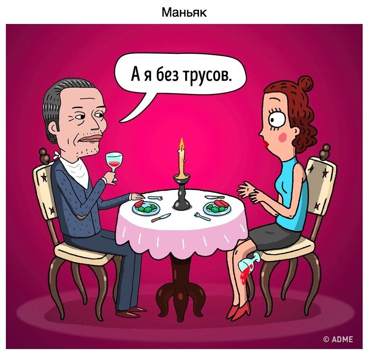 13 комиксов о том, какие типы парней можно встретить на первом свидании.