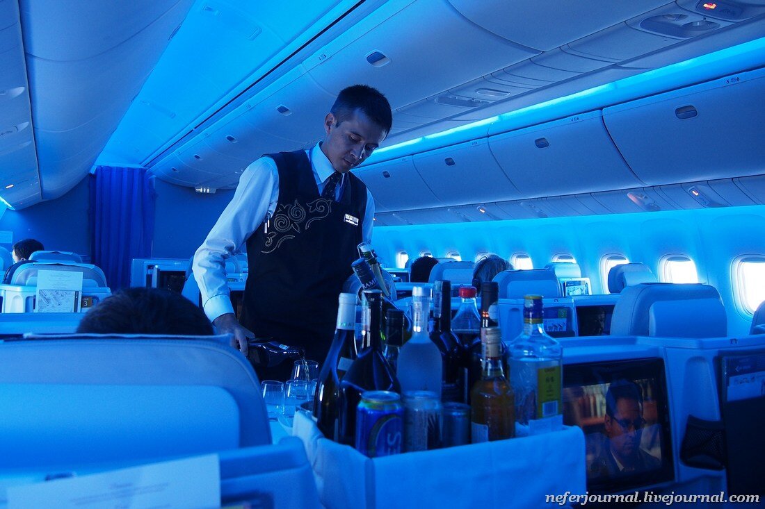 В Boeing 767 кресла расположены по схеме 1-2-1. По одному ряду у иллюминатора и в середине салона парами. Причем заметьте, места находятся в шахматном порядке. У каждого пассажира лампочка индивидуального освещения, розетка и система развлечений. Но есть кое-что еще.
