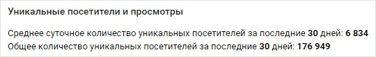 В первой вкладке «Посещаемость» отображена статистика посещений сообщества и отдельных его разделов. В самом её верху отображается среднее количество уникальных посетителей сообщества за сутки на основе данных за последние 30 дней, а также общее количество уникальных посетителей за прошедший месяц.