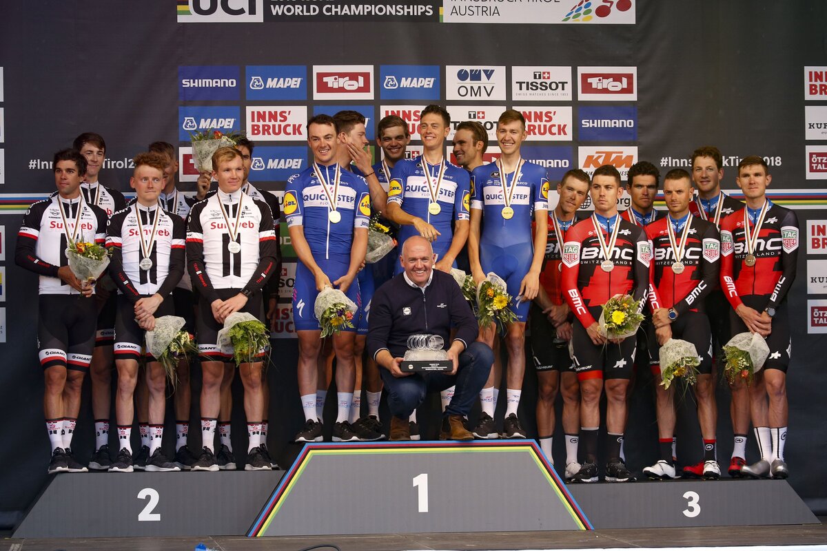 В Инсбруке стартовал чемпионат мира по велоспорту: традиционно старт соревнованиями дала командная гонка с раздельным стартом. Team Sunweb предстояло защищать чемпионский титул, и немецкая команда всё же оказалась на подиуме, но не в качестве команды-победительницы. На вершине подиума оказалась лучшая команда сезона — Quick-Step Floors. Бронзовые медали достались BMC Racing Team. Интересная дистанция в 62,8 километра, позволившая зрителям с интересом наблюдать за перипетиями состязаний команд, а гонщикам — проявить лучшие качества, раскрыв себя не только в скоростном заезде, но и преодолев пятикилометровый подъём Аксамса со средним градиентом в 5,6%. В итоге Ники Терпстра, Максимилиан Шахманн, Ив Лампарт, Боб Юнгельс, Лауренс Де Плас и Каспер Асгрин остановили таймер на отметке в 1 час 7 минут и 25 секунд. Средняя скорость бельгийской велокоманды — 55,8 километра в час. А на скоростном спуске скорость превышала 100 километров в час. В свою очередь Сэм Оомен, Майкл Мэттьюс, Сорен Краг А