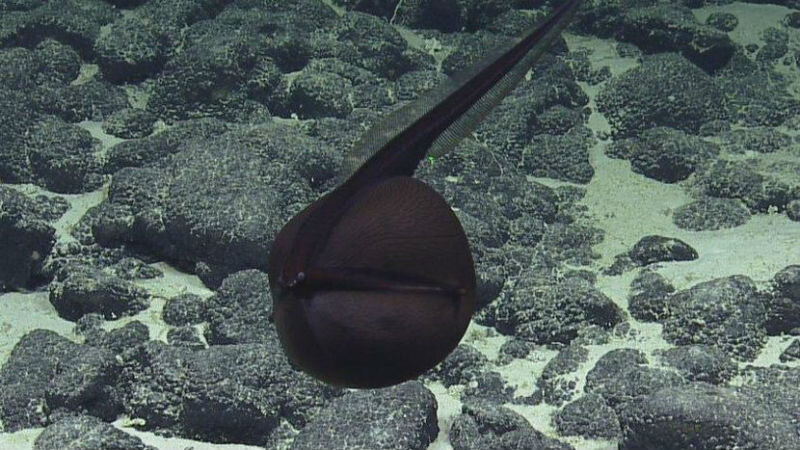 Моменты научных открытий очень редко удается заснять на камеру, но видео, сделанное морскими биологами корабля «Наутилус» в Тихом океане является редким и крайне приятным исключением. Группа ученых осматривала морское дно, когда неожиданно наткнулась на невероятно редкую рыбу – большерота или пеликанового угря. Эта глубоководная рыба крайне редко встречается, иногда попадается в рыболовных сетях, а заснять ее вживую практически невозможно. Реакция ученых на видео была бесценна. Сначала команда не могла понять, кто же к ним приближается, но когда рыба начала надуваться, становясь похожей на большой черный воздушный шар, а затем показала свои челюсти под дружный гул удивления, биологи наконец поняли, кого снимают. Большерот имеет длинное и узкое тело, внешне напоминающее угря. А вот свое прозвище «пеликан» большерот получил благодаря растягивающейся до невероятных размеров глотке, похожую на сумку под клювом у пеликана, что, собственно, он и продемонстрировал на камеру. В длину они дост