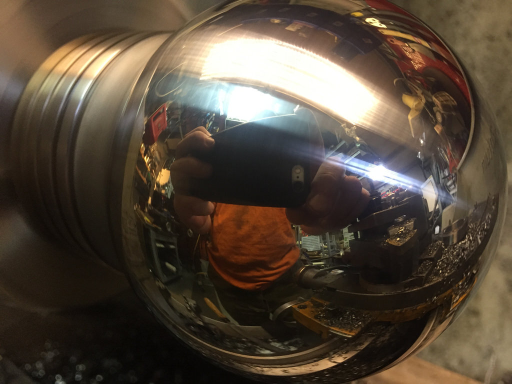 Ага, всегда ведь хотели знать? Вот прям взять ШАРИЩЕ на несколько кило, на котором когда-то башенный кран крутился и к нему что-то взять и приварить?! Легко, берем шар (шариком этот символ русской смекалки диаметром 76 мм уже не поворачивается называть), точим гайку из подножного материала, громоздим одно на другое и смело ТИГом сперва прихватываем а потом обвариваем по кругу, быстро, размашисто, чтобы тепло до макушки не добралось, ей еще пахать и пахать Охлаждаем, сушим, маслим, а для чего все это затевалось- смотрим по ссылке
