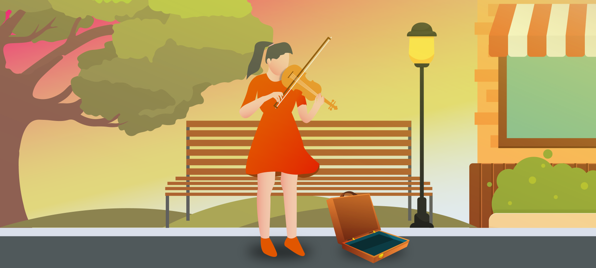 Петь на улице я тоже не люблю. Во-первых, надо тащить на себе аппаратуру: гитару, комбик (колонку), провода, микрофон. Во-вторых, никогда неизвестно, сколько будешь играть и сколько заработаешь. В-третьих, у нас на Урале короткое лето. Я играю в центре города. На практике поняла, что начинать нужно не раньше 9 вечера, люди в это время более расположены, гуляют, бросают деньги. Полтора-два часа играешь, получается что-то около 1000 рублей. Иногда меньше.