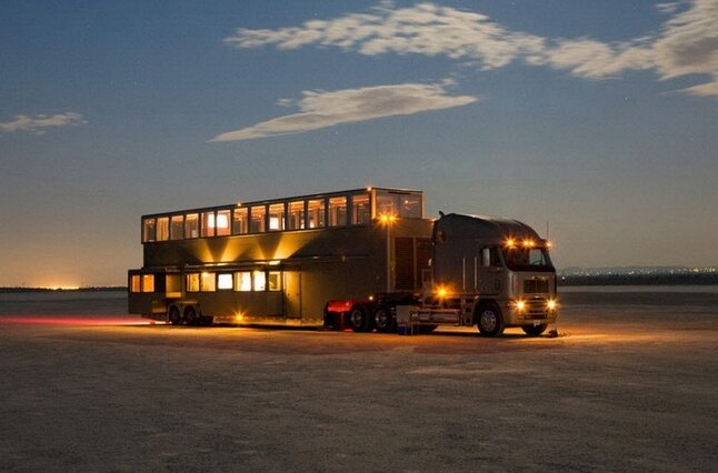 Некоторые люди, добившись большого успеха, создают вокруг себя максимально комфортную среду. И от этого комфорта они не намерены отказываться даже на несколько дней. Именно для таких людей, компания Anderson Mobile Estates создает самые роскошные трейлеры в мире. Среди клиентов компании не только бизнесмены и богачи из ОАЭ, но голливудские звезды, например, Уилл Смит и Вин Дизель. Стоимость создания одного такого домика на колесах начинается от 5 миллионов долларов. Перевозятся трейлеры обычными седельными тягачами. Уилл Смит купил себе сразу три варианта трейлера. В одном он живет во время съемок. Другим пользуется как полноценным тренажерным залом. А третий предназначен для хранения вещей, т.е. является гардеробом на колесах. В жилом трейлере два этажа общей площадью 107 квадратных метров. В нем есть все для комфортного проживания и отдыха после тяжелого рабочего дня: большая спальня, ванная из гранита, рабочий кабинет, кабинеты для помощников и пресс-секретарей, кухня, кинотеатр, ба