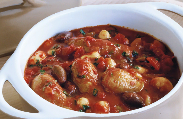 Давайте попробуем приготовить вкусный гуляш из копченых колбасок и фасоли. Приготовим ингредиенты для приготовления вкусного блюда: перец сладкий-два штуки фасоль-300 грамм томатная паста-пять столов.ложек соль и перец -по вкусу масло растительное-50 мл копченые колбаски-450 грамм перец чили-1 ч.л. (количество на усмотрение) лук-два штуки чеснок-два зубка Процесс приготовления: Фасоль нужно замочить на всю ночь и сварить ее в подсоленной воде около часа до готовности фасоли. Чеснок очистить,вымыть и выдавить через пресс. Перец нужно помыть,очистить и порезать его соломкой. Лук тоже очистить и нарезать мелко. Приготовить глубокую емкость (ее будем ставить в духовку),нагреть с маслом на огне и обжарить в ней лук до мягкости на протяжении минут двух. Далее,добавляем к луку перец чили,томатную пасту и измельченный чеснок.Тушим все минуток пять,периодически помешивая. После,наливаем воды пол литра и варим ,пока не закипит. Нарезаем кружочками колбаски и добавляем в емкость к луку. Ту