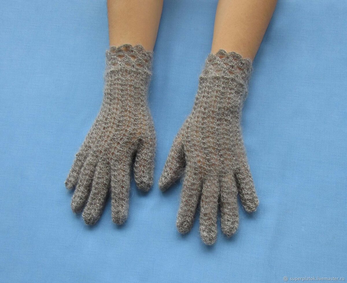 Перчатки-вещь нужная и удобная. Расскажу,как на примере простой модели можно связать перчатки крючком. Очень многое зависит от выбора пряжи и рисунка, которым они будут связаны. Удобство вязания крючком именно перчаток- это то,что они получаются тонкими,но плотными. Снимаем мерки для вязания перчаток: ширину ладони у основания пальцев, расстояние от основания до изгиба большого пальца, расстояние от основания ладони до кончика среднего пальца и расстояние от основания ладони до основания мизинца. Лучше использовать пряжу шерсть с примесью акрила,такие нитки несколько прочнее шерстяной пряжи. Крючок выбираем в соответствии с толщиной пряжи. Расчет петель должен быть таким: длина окружности запястья и плюс 1 см для свободного одевания. Вяжем цепочку из воздушных петель, соединяем их в кольцо, делаем 3 петли для подъема. 1-й ряд-это столбики с накидом, последняя петля-соединительная. Все остальные ряды резинки вяжем,чередуя выпуклые и вогнутые рельефные столбики. Это будет резинка. Он