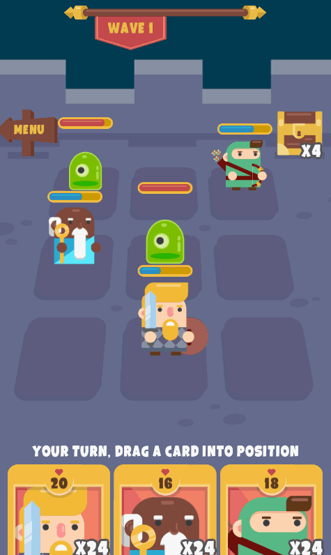 Что же здесь все во мне в крем будет сделать, а здесь вам необходимо будет выстроить ряд по вертикали по диагонали и или по горизонтали из трех своих героев. Герои здесь бывают, как я сказал, трех видов - это мечник, лучник и маг. В чем же их ключевое отличие? Ну во первых у них отличается количество жизней которые они имеют, ну во вторых они атакуют по разным траекториям. Маг атакует всех вокруг себя. Мечник может атаковать только по вертикали и по горизонтали, то есть крестообразно. Ну а лучник атакует только по одной линии, но его главное преимущество заключается в том, что он может наносить урон сразу двум противником. И вот в таком вот духе вам и необходимо играть. Тем самым вам необходимо не только выстроить ряд из трех своих героев и не дать то же самое сделать оппоненту, но и при этом нужно учитывать, что ваши герои могут быть убиты и соответственно вы также можете убивать своих врагов и освобождать их клетки. В этом и заключается основная тактика и стратегия игры. В игре вас будет ждать четырнадцать уровней и на каждом из них будут присутствовать абсолютно уникальной противники со своими фишками и особенностями, которые будут существенно усложнить игру. Но для того чтобы с ними справляться и побеждать вы сможете постепенно прокачивать своих героев. Вам за каждого убитого противника будет даваться монеткой и за эти монетки вы сможете повышать атаку ли защиту своих героев и таким вот образом постепенно вы сможете справиться со всеми и победить их всех. Мне идея игры показалось довольно интересной, однако после минут 30 игры она быстро надоедает и возвращаться в неё не совсем хочется, но все это только потому, что разработчики плохо поработаю над балансом (если они меня читают, то ребята исправьте баланс и вашей игры действительно будет довольно большое и неплохое будущее).