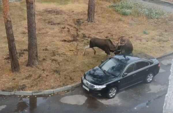 Дикие животные устроили во дворе жилых домов брачные игры. Подписчики сообщества «Пенза live» бурно обсуждают запись, которую опубликовал житель Заречного с комментарием: «Утро начинается не с кофе! Любовные разборки лосей». Молодой человек запечатлел трех животных – двух самцов и самку во дворе пятиэтажек на улице Братской. На кадрах видно, что самцы в течение нескольких минут выясняют отношения, причем, довольно агрессивно. Сохатые нападали друга на друга, а затем сцепились рогами и начали толкаться. Все это происходило на поляне перед домов, рядом на проезжей части были припаркованы несколько автомобилей. В какой-то момент один лось, пытаясь ударить рогами оппонента, гонит его к машине, но тот в последний момент отскакивает, и противник таранит рогами транспортное средство. Удар, судя по всему, пришелся в заднюю правую дверь, отчего у авто срабатывает сигнализация. Животные, несколько секунд потолкавшись, удаляются в сторону. Каким получился финал этой битвы, неизвестно. Почти четыр