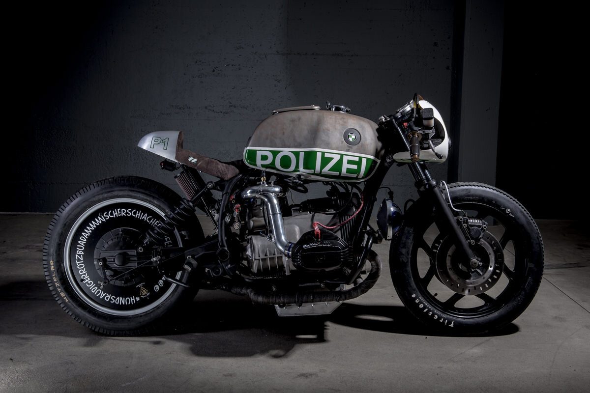 Полицейские во всем мире в качестве патрульных машин выбирают мотоциклы марки BMW, но мы еще не видели ни один, похожий на этот. Это модель R80 RT правоохранительных органов из поздних 80-х годов. Когда-то он был оборудован проблесковыми маяками и специальными контейнерами. От первоначального оснащения байка остались только наклейки и синий аварийный световой сигнал. Но теперь он привлекает даже больше внимания, чем в свое время на службе. Кастом из мастерской VTR Customs Кастом был построен Дэниелом Вайдманом из мастерской VTR Customs, которая находится в Швейцарии, самой законопослушной стране. Команда мастеров VTR состоит из городских кастомайзеров и фанатиков гонок. Их гараж расположился в подвале дилера BMW под названием Stucki 2Rad. До сегодняшнего дня из-под рук этих мастеров вышло бесчисленное количество кафе-рейсеров и байков в стиле брэт из закаленных погодными условиями остатков от мотоциклов BMW, проводимых в движение классическими оппозитными моторами. Затем было принято к
