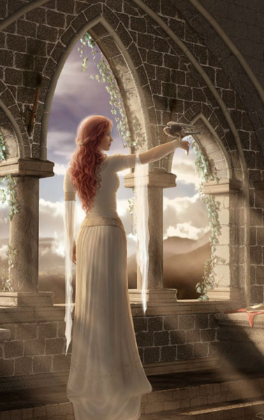 Когда все дети расселись, малютка-поезд полетел. Поднявшись над лесом, реберня так и ахнули. Перед ними расстилалась прекрасная картина: на небольшой возвышенности, окружённой со всех сторон непроходимым таёжным лесом, высился прекрасный старинный замок в древнерусском стиле, похожий на царские палаты. Голубая лента реки, перекатывалась с шумом по камешкам, начинаясь где-то за лесом. Недалеко от замка она разделялась на два рукава и опоясывала его со всех сторон. Затем снова соединялась и несла свои воды дальше. Посередине холма стояло главное и самое большое здание замка, от которого шли четыре перехода, делящие внутреннюю площадь на четыре квадратных двора, а также, соединявшие его с высокой стеной, по углам которой были расположены жилые башни. Стена объединяла все четыре башни правильным квадратом. Можно было увидеть, что весь замок окрашен в четыре цвета: оранжевый, синий, серебряный и золотой. Дворы, башни, переходы – всё было окрашено в свой цвет. Центральное же здание переливалось всеми четырьмя цветами. Вокруг замка располагалось несколько строений.