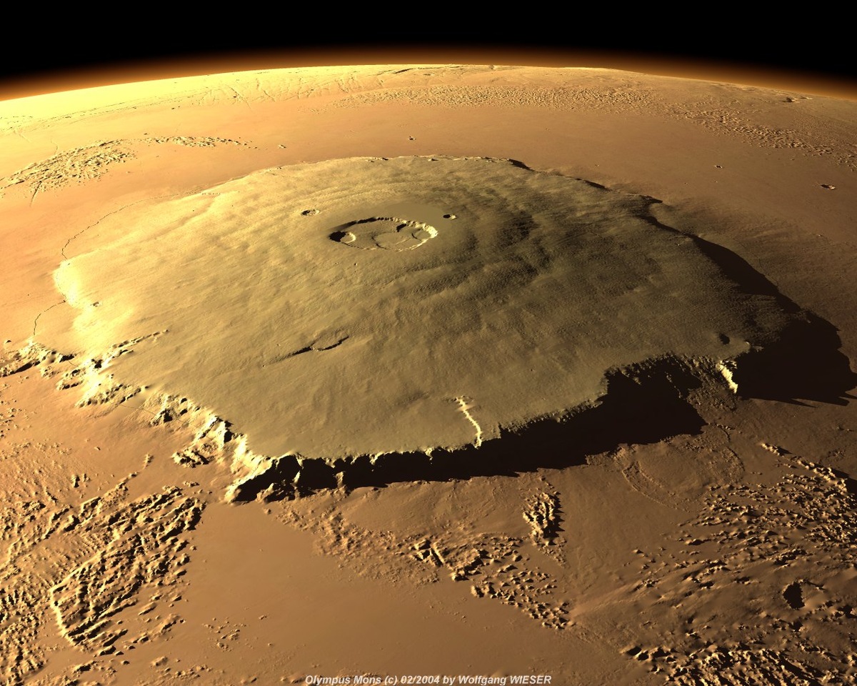 Марс - четвертая планета от Солнца. Планета,которая в наше время активно исследуется,а также единственная планета,которая заселена полностью роботами(на сегодняшний день),их насчитывают около 7 штук. Марс,как тайна Марс можно рассматривать с разных сторон,но нас эта планета интересует лишь со стороны кладезя тайн и секретов. Одни самых популярных вопросов касательно Марса - это: Есть ли на Марсе вода и существуют ли Марсиане? Как-бы это не было интересно,мы рассмотрим несколько иные вопросы. Олимп Олимп - высочайшая гора ,которая известна по сей день. Высота Олимпа - 27 км. Для сравнения6 Высота самой высокой горы Земли(Эверест) - 8,8 км. Диаметр Олимпа - 540км.( Для сравнения расстояние от Москвы до Санкт-Петербурга 640км). По сей день есть предположения,что именно внутри Олимпа,может находиться вода,а также небольшие поселения,ведь как оказалось Олимп-вулкан потухший около 2 млн. лет назад,а также неподалеку от Олимпа были найдены небольшие сборища "кирпичей",а это значит,что в жерл