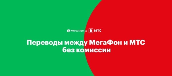 Специальные условия на денежные переводы между абонентами МТС и МегаФон – комиссия 0%.