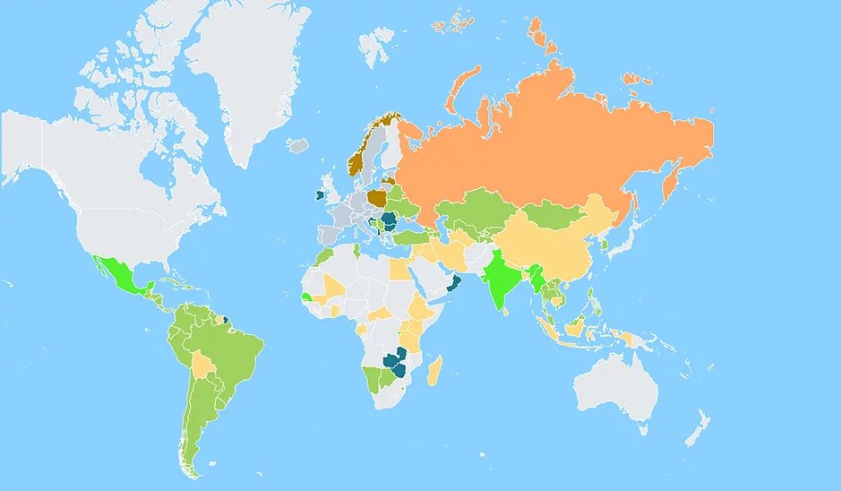 - Индия (30 дней при наличии визового разрешения, оформленного онлайн, только в ряде аэропортов)