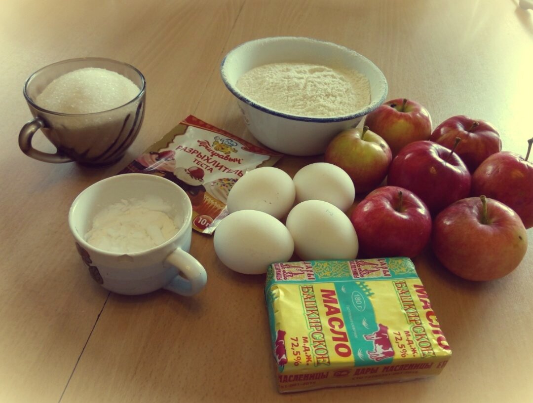 Я знаю, что тут уже много-много раз публиковались рецепты яблочной выпечки, в частности шарлоток, но этот пирог существенно от них отличается, поэтому я решила поделиться им с вами c: Нежная и воздушная меренга превосходно сочетается с кисло-сладкими яблочками :з Поверьте, получается очень вкусно! Ингредиенты: ~~~~~~~~~~ * яблоки - у меня мелкие, 7 штук; если крупные, то три-четыре; по массе около 400 грамм (собрала в саду) * яйца - 4 шт (~20 руб) * сахар - 120 гр + 5 ст. ложек (~8 руб) * разрыхлитель теста - 1/2 ч. ложки (упаковка~8 руб) * мука - 250 гр (~9 руб) * картофельный крахмал - 3 ст. ложки (~12 руб), можно заменить мукой * щепотка ванилина, по желанию * немного растительного масла для смазывания формы * сливочное масло или маргарин - 150 гр Я беру в Кировском "Башкирское" масло, стоит всего 43 руб. Оно с добавлением растительного, но для выпечки подходит хорошо ^^ Маргарин будет ещё дешевле, ~30 руб Итого, если у вас есть свои яблоки, то как раз укладываемся в