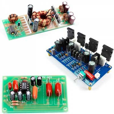 Все эти модули представляют собой наборы для сборки и включают в себя печатные платы и наборы необходимых электронных компонентов, которые необходимо распаять на платах. Такой формат позволяет снизить стоимость модулей. Дополнительная экономия получается также потому, что перечисленные наборы предлагаются в виде комплекта, общая стоимость которого ниже, чем сумма стоимостей входящих в комплект модулей. Корпус для готового изделия каждый может выбрать или изготовить исходя из места установки усилителя в автомобиле и других факторов.