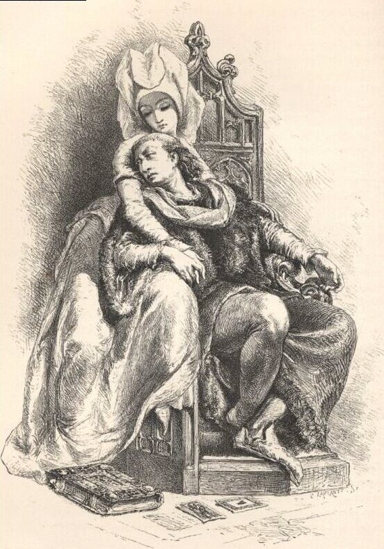 Вообще-то, такая женщина была. Ее звали Валентина Висконти, герцогиня Орлеанская, и она была женой младшего брата короля. В ее присутствии Карл всегда успокаивался, приходил в себя и извинялся перед "милой сестрицей". Вот только по настоянию королевы Валентину сначала удалили от двора, а потом и вовсе изгнали из Парижа за чародейство. Под чародейством как раз и понималось то воздействие, которое герцогиня оказывала на Карла.