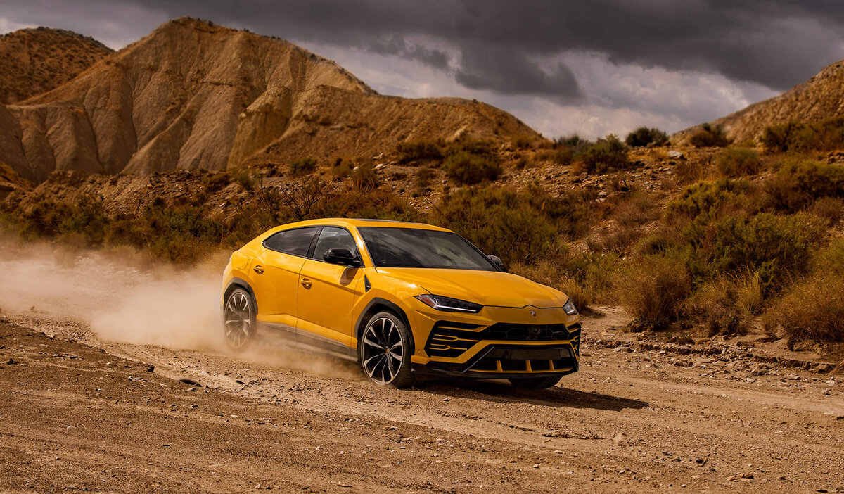 Lamborghini Urus — первый серийный внедорожник компании. Под капотом здесь двигатель V8 с парой турбонагнетателей Twin Scroll. Мощность составляет 650 л.с. Коробка восьмиступенчатая, автомат. С нуля до ста автомобиль разгоняется всего за 3,6 секунды, а до двухсот км/ч он разгонится за 12,8 секунд.