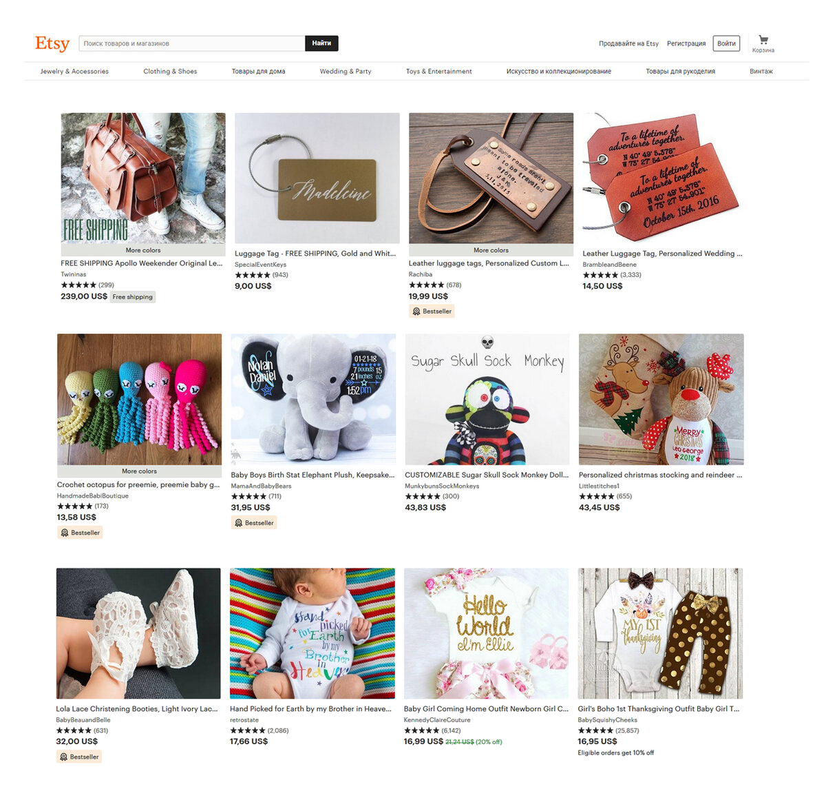 Если вы производите свои handmade товары, то наверняка, знаете где их продавать на просторах рунета. Это социальные сети и сайты, типа Озон и Ярмарка Мастеров. А знаете ли вы, что многие русские производители-продавцы зарегистрированы и успешно продают свои товары на американских площадках? Если для вас это новость, то раскрываем карты. Самые популярные площадки товаров handmade в Америке - Etsy и Dawanda. Рассмотрим подробнее площадку Etsy, у которой более 70 млн. активных пользователей. На площадке можно продавать изделия ручной работы, винтажные изделия, которым более 20 лет и материалы для изготовления ручных изделий - ткани, пряжу, бисер и другое. Почему выгодно открыть свой магазин за границей? Вот цены на вязанный комбинезон в Америке: А вот цены на такие же изделия в России: Разница очевидна, за границей ручная работа оценивается в 2 раза дороже ) а также, популярность изделий ручной работы в Америке выше, чем в России. Безусловно, конкуренция высокая и на наших маркетплейса