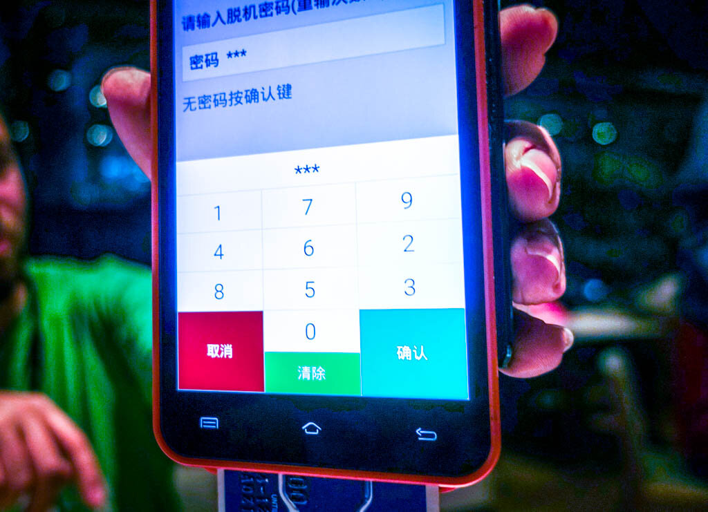 В одном из китайских городов мы пошли во французский ресторан. Ну бывает иногда - после недели в Китае, хочется какой-нибудь более привычной еды. Счёт вышел соответствующим, и мы решили заплатить кредиткой. У Вити она европейская, с PIN-кодом. Так что ему принесли машинку, чтоб этот код ввести. При этом цифры на ней были расположены как-то очень странно, как будто в случайном порядке.