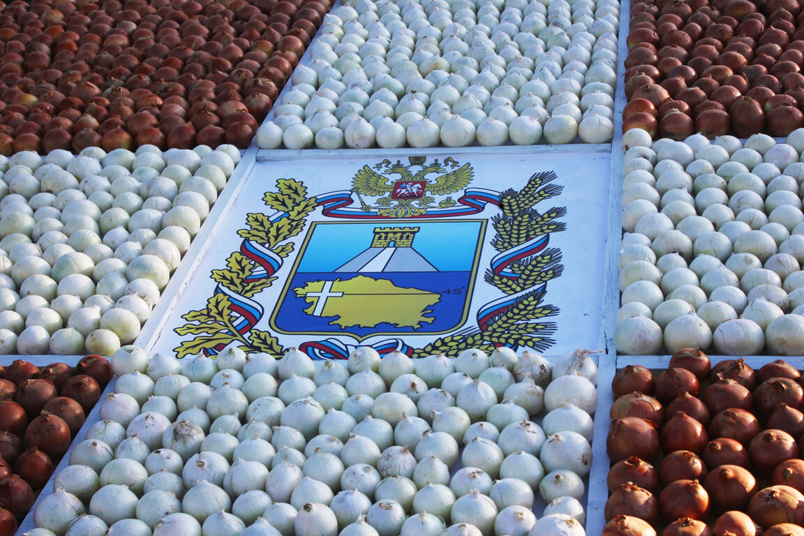 А работники легендарной «бахчи Пономарёвых» привезли огромные тыквы и арбузы весом до 42 килограммов.