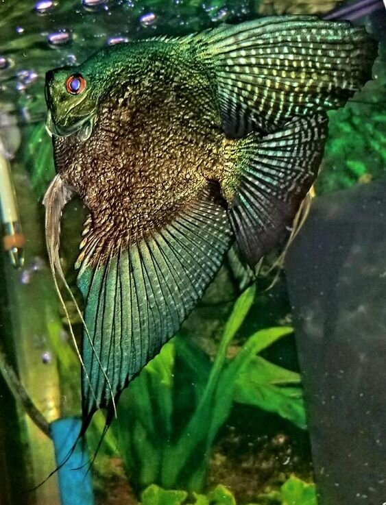 Пиной - это селекционно выведенная скалярия, в ней нет ничего необычного, кроме редкого окраса. Пиной это просто имя для обозначения линии филиппинской голубой скалярии с черным геном или двумя черными генами. Обычно это темные, но не совсем черные скалярии с зелеными и голубыми областями, отливающими металликом. Могут быть регулярные с полосами как у типичной скалярии, могут быть дымчатые, призраки, зебры, жемчужные и т.д. Есть линии pinoy в которых черный цвет убрали до минимума, но он все равно есть в генах.