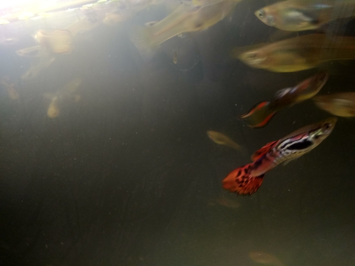 Плодились в "общем" (с анциструсами, креветками, и на тот момент скаляриями) аквариуме объемом 90 литров. По началу процесс "контролировался" и мальки отсаживались. Позже, однако, когда их количество стало чрезмерным, мальки оставлялись в основном аквариуме с родителями и прочими рыбами и на удивление выживали почти все ("на глаз", так как подсчет весьма затруднителен, однако, судя по количеству подростков и взрослых, следует полагать, потеря в популяции мальков была незначительной, если была вообще). По прошествии трёх месяцев всю эту ораву неизвестно куда девать, удалось продать только 25 штук по очень демократичной цене в 25 руб./шт.. Страшно подумать, что будет ещё через три месяца, учитывая их неимоверную плодовитость. Видимо, придется снабжать рыбками все близлежащие школы, дома сирот, интернаты и подобные учреждения, где большая стая рыбок в 50-100 шт. лишней не будет, принимая во внимание, как красиво они переливаются в большой, разноцветной стаи и их розничную цену, по котор