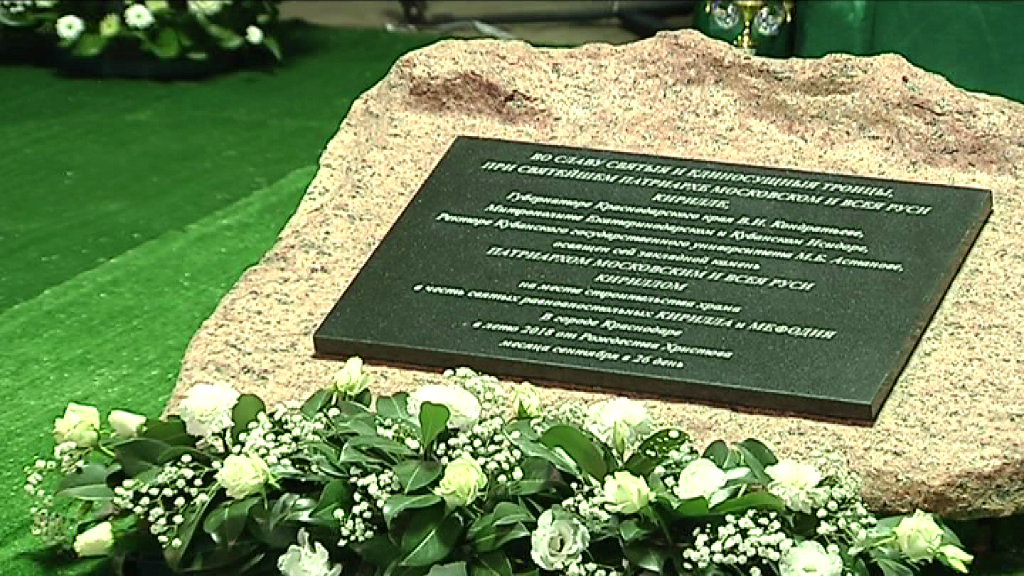 Его возведут на территории Кубанского государственного университета. Глава русской православной церкви освятил место под строительство храма. В торжественной церемонии закладки камня приняли участие губернатор Кубани Вениамин Кондратьев и полномочный представитель президента России в Южном федеральном округе Владимир Устинов. Кирилл, Патриарх Московский и всея Руси: «Замечательно, что в 21 веке мы возвращаемся к нашим истокам. Хорошо, что здесь, на Кубани будет при университете существовать храм, посвященный тем двум людям, которые заложили основы всякому знанию. Я очень надеюсь, что очень многие студенты, профессора, преподаватели в этом храме обретут опыт молитвы» Патриарх Московский и всея Руси Кирилл подарил ВУЗу для будущего храма икону с образом Божией матери. После чего святейший вместе с Вениамином Кондратьевым и Владимиром Устиновым посадил дерево в память об освящении закладного камня. Известно, что храм в честь святых Кирилла и Мефодия собираются выполнить в древнерусском