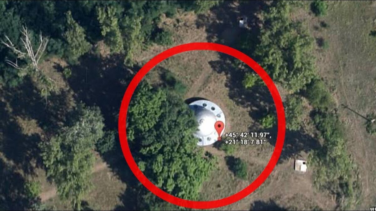 Корабль, поросший деревьями Фото: Google Maps Этот заброшенный и поросший деревьями корабль был снят спутником на реке Парраматта, протекающей вблизи Сиднея, Австралия. Судно под названием SS Ayrfield было спущено на воду в 1911 году. В 1972 году его списали, и с тех пор корабль пришвартован в устье реки. НЛО в Румынии Фото: Google Maps Объект, похожий формой на НЛО из фантастических фильмов, был обнаружен на одной из заброшенных ферм рядом с румынским городом Тимишоара. Находка породила массу слухов о визите на Землю инопланетного корабля. На самом деле летающая тарелка — это заброшенная водокачка, которая раньше снабжала Тимишоару водой. Дыхание пустыни Фото: Google Maps Странные круги в пустыне Сахара были созданы в 1997 году руками людей, состоящих в творческом объединении D.A.S.T. Сделана скульптура из двух спиралей, исходящих из центра, одна из которых создана из конусов, расширяющихся по мере отдаления от начала, а вторая — из углублений, сооруженных по тому же принципу. По з