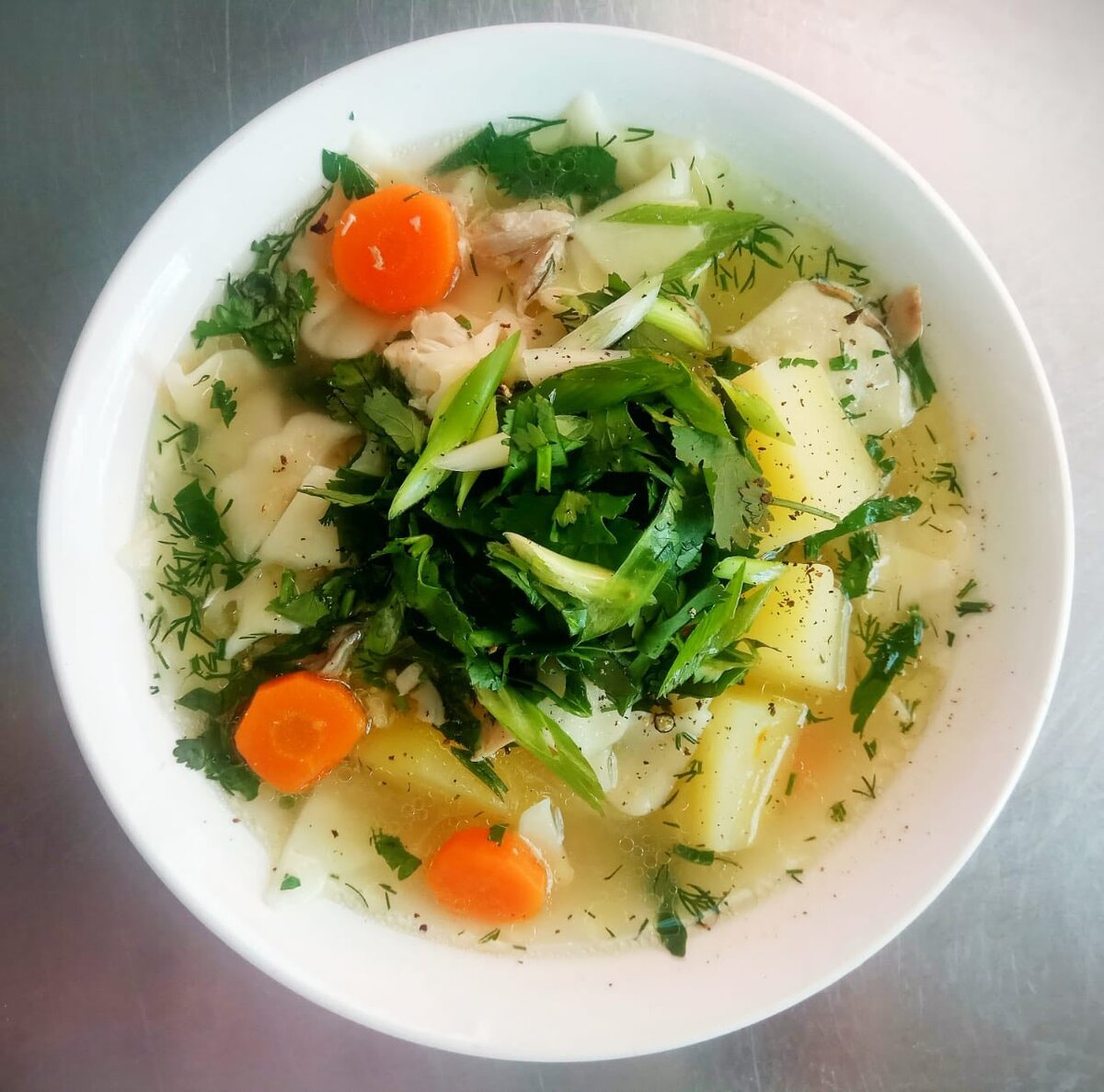 Друзья привет! Немного похолодало и сразу потянуло на горячее, сегодня захотелось супа, но не простого, а сытного. И было решено приготовить суп 2 в одном. Вроде и бульон, а вроде и очень густой. Думаю каждый ел его хоть раз. Это Лагман. Он великолепно лечит после загулов и отлично насыщает если ты просто голоден, а ещё он очень вкусный: