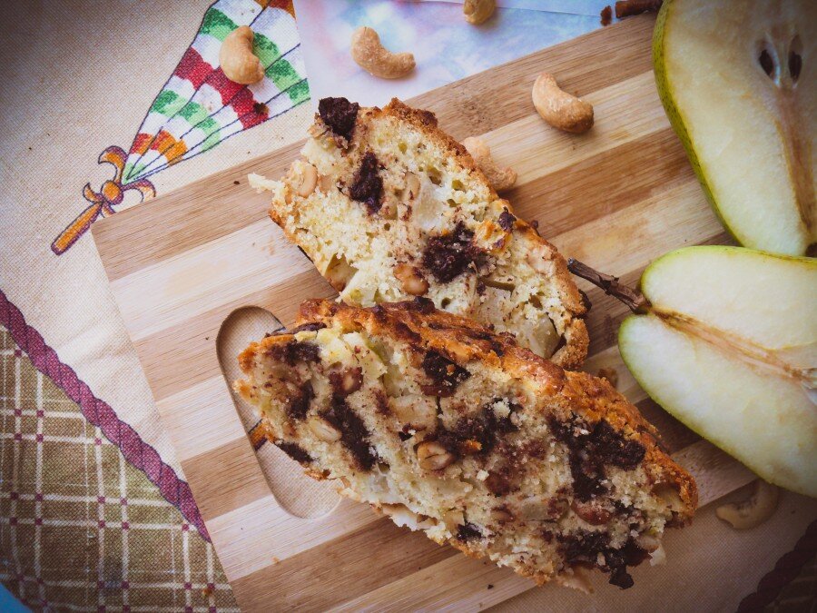 Шоколад и орехи мелко порубим. Грушу порежем кубиками.