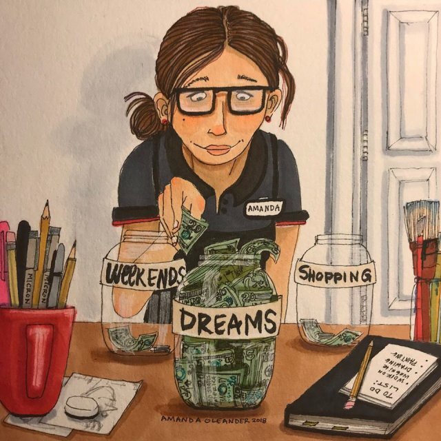 Хотите знать, как выглядит наша жизнь на самом деле? Тогда предлагаю вам посмотреть замечательные картинки Аманды Олеандер. Аманда Олеандер – талантливая художница из Лос-Анджелеса, которая создала свой новый проект под названием "Наша жизнь в мелочах". Этим проектом она хотела показать бытовую сторону нашей жизни. Надеюсь, что вы оцените её работы по достоинству, а по её картинам вспомните собственные жизненные ситуации.