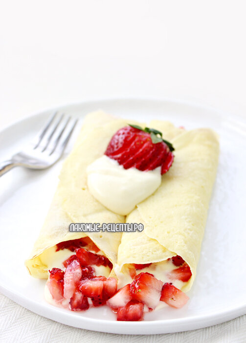 3. Полностью готовые блинчики заполняем начинками из взбитых сливок, джемов, варенья, сладких и пикантных соусов. Украшаем орехами, свежими ягодами и фруктами, сахарной пудрой. Пикантные блинчики заполняем соусами, шпинатом и посыпаем орешками. Этот рецепт точно удивит ваш вкусовые рецепторы!