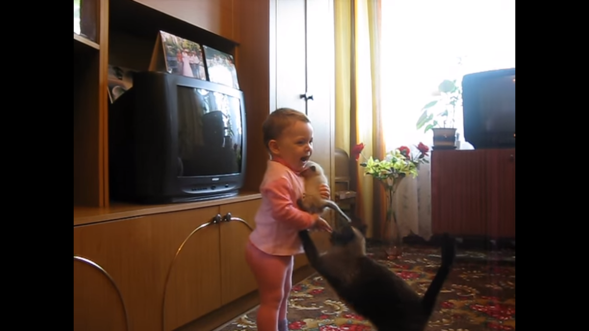 Материнский инстинкт кошки говорит ей о том, что ребенка надо забрать и срочно, ибо ему на руках не нравится сидеть и он явно плачет. Так что кошка не жадина, кошка просто мать. Если вам понравилась статья, оценивайте, подписывайтесь на наш канал и делитесь с друзьями , дальше будет много интересного. Спасибо!