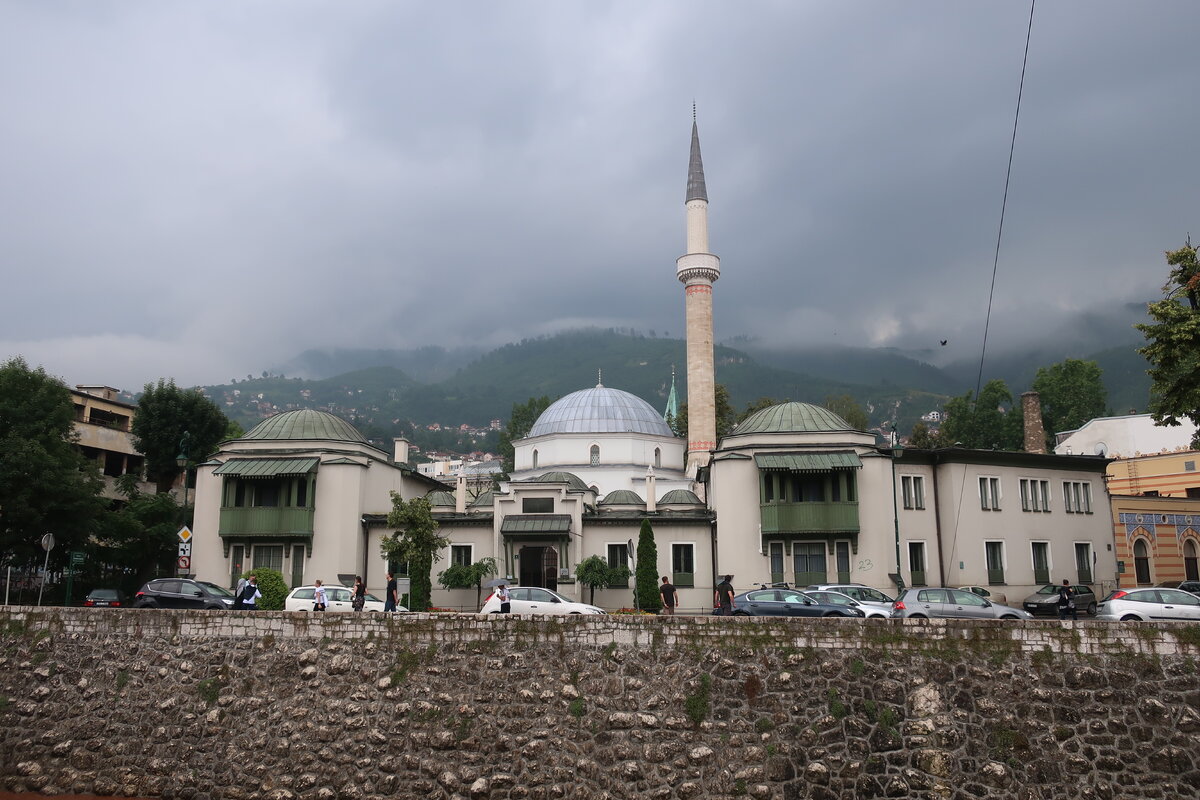 У вас я тоже думаю, бывает такое – приехал в какой-то город или страну и понял, вот, это моё, это навсегда. И неважно как долго до него ехать, на каком языке там разговаривают и какую религию проповедуют. Так у меня случилось с Сараево. Кто не знает – это столица Боснии и Герцеговины. В этот город судьба нас забросила во время летнего трипа по странам бывшей Югославии. Сараево стояло пятым городом в списке и очень жаль, что мы были в нем буквально сутки. Приехав в город вечером, нам хватило сил только сходить в магазин, наспех поужинать и упасть в постель. Но весь следующий день мы ходили по городу и только успевали смотреть по сторонам. Город поражает контрастами: 1. При том, что примерно 81% населения – это мусульмане – рядом с мечетями можно спокойно увидеть католический собор и православный храм. 2. На первый взгляд город наполнен красивейшими постройками прошлого века – Виечница (городская администрация и по совместительству библиотека и культурный центр), Академия Искусств,