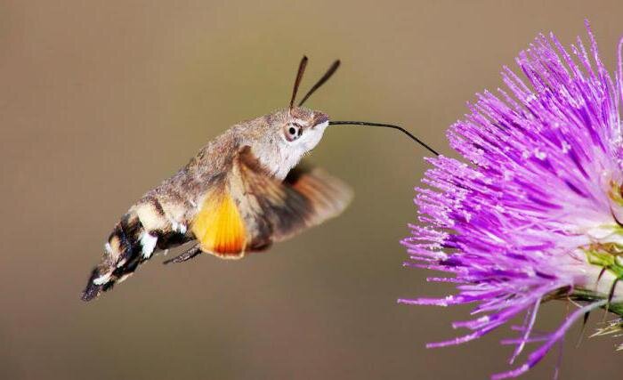 Наверное многие слышали,а возможно даже видели собственными глазами, как пролетало большое "пушистое" насекомое. Оно кружило около цветков или других растений, пило нектар и улетало на новые поиски. Чаще всего их можно было увидеть в городах курортах. Это загадочное создание - Ястреб-мотылёк. Он действительно похож на колибри, с которым его постоянно сравнивают. А чем именно мы сейчас и узнаем. Ястреб-мотылёк он же бабочка-бражник или хоботник. Насекомое небольшого размера и имеет необычный окрас, что делает его похожим на колибри. Так же может развивать скорость полёта до 50 км/ч, пусть это ниже чем у самого колибри, но на такой скорости другие бабочки и мотыльки не летают.