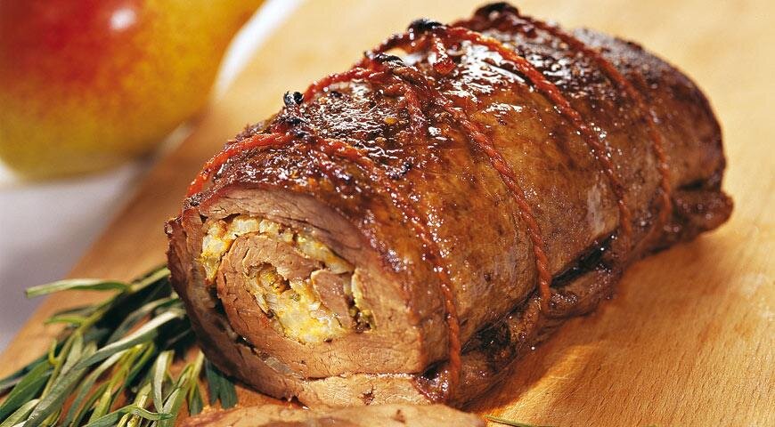 Предлагаем вам самый лёгкий и быстрый рецепт говяжьего рулета с ароматным сыром. Ингредиенты: Говядина 500 г Сыр (твёрдых сортов) 80 г Мука 1-ого сорта 20 г Крахмал 20 г Куриное яйцо 1 шт. Сливки (30% жирности) 40 г Морковь (варёная) 50 г Аджика 40 г Вода 100 мл Тмин молотый 2 г Соль 2 г Чёрный молотый перец 2 г Пошаговое приготовление: 1) Говядину пропускаем через мясорубку, добавляем тмин, пшеничную муку, крахмал, куриное яйцо, перчим, солим, заливаем сливки и хорошо перемешиваем. 2) Начинаем готовить начинку. Берём сыр твёрдых сортов и натираем на крупной тёрке. Морковь очищаем натираем на мелкой тёрке, добавляем в начинку и в самом конце аджику. 3) Из готового фарша формируем 3 лепёшки, а в центр укладываем фарш. Соединяем края, придавая форму рулета. Почти готовые рулеты заворачиваем смазанные полностью жиром листы фольги и укладываем на противень. Для сочности подливаем воду и запекаем в духовом шкафу 30 минут. 4) Готовые рулеты остужаем, снимаем фольгу и выкладываем на празднич