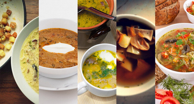 С КАПУСТОЙ, ЧЕЧЕВИЦЕЙ, ПЕРЛОВКОЙ И ДРУГИМИ ДОПОЛНЕНИЯМИ Отвар из лесных грибов — необходимая сезонная потребность. Как весной уставшее тело требует витаминов, как летом — кваса, так осенью — как первоначальной, так и мрачной поздней — мы нуждаемся в грибных супах, согревающих и обнадеживающих. Летом 2018-го в средней полосе с грибами было нестабильно. Где-то их было привычно много, а где-то не было совсем. При таком раскладе дефицитными белыми или подосиновиками хочется распорядиться как можно точнее. Вот 9 супов из лесных грибов, где они ловко сочетаются с вермишелью, капустой, перловкой и даже чечевицей. Если же вам не повезло и добыть лесных грибов не удалось, смело берите шампионьоны. Крем-суп из цветной капусты с лесными грибами и шнитт-луком По сути, это традиционный суп-пюре из цветной капусты, в который для интриги добавлены жареные лесные грибы и нежный шнитт-лук, он же лук-резанец. Сырный суп из лесных грибов с крутонами И без того крепкий бульон из сухих лесных гри