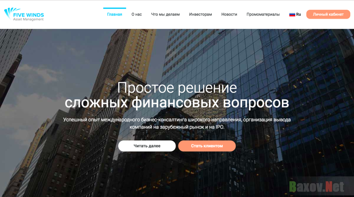 Известные названия проекта Ссылки на сайт проекта E-mail адреса проекта Внимание! мошенники очень часто меняют адреса своих лохотронов. Поэтому название, адрес сайта или email может быть другим! Если Вы не нашли в списке нужный адрес, но лохотрон очень похож на описанный, пожалуйста свяжитесь с нами или напишите об этом в комментариях! Информация о проекте "Five Winds Asset