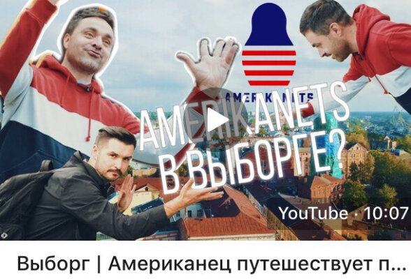 Американец Энди вместе со своим русским другом Евгением на один день отправились в Выборг и записали 10-минутный видеоролик. Ничего полезного для туристов в этом видео не встретишь - ролик скорее снят "для фана". Друзья гуляют в своё удовольствие и рассуждают о средневековом городе. Энди за почти два десятка лет хорошо выучил русский язык, но иногда путается в ударениях. Так, он не мог правильно произнести "Выборгский замок", все время ставя ударение в слове "замок" на второй слог. Также американцу не понятно образование уменьшительно-ласкательных русских имен. Например, Энди не понимает, как имя Александр способно трансформироваться в Шуру. «За эти годы я проехал вашу (или можно уже говорить, нашу) страну от Калининграда до Камчатки и увидел своими глазами, что Россия замечательная. Страна возможностей! Мне нравится наводить мосты между нашими культурами, создавать возможности для партнерства, узнавать новое и делиться этим с другими. Как я это делаю? В том числе веду свой видеоблог о