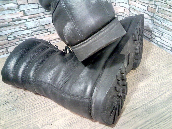 Доброго времени, дорогие читатели! Обратился ко мне заказчик. Берцы, «сносились сзади». Уточняю – сзади подкладка или сзади каблук? Каблук. Понятно. Замена подошвы, значит. Да, он за этим и звонит. Договорились о встрече. И что я вижу? Замечательные ботиночки хорошего рантового метода крепления. Такие подошвы менять можно, но пока рано. Каблуки на них не решёткой, а монолитные. Сношены сильно, да. Но это поправимо косяками. Косяк, косячок (ха-ха, какое смешное слово) – деталь, которая призвана выровнять изношенную часть ходовой поверхности каблука. Ставится обычно наискосок, откуда и название. После выравнивания поставим набойку. Применим самую фигуристую набойку из имеющихся. Даже рисунок похож. Ещё, к радости клиента, я показал изношенную подкладку, которая, впрочем, его не беспокоила. Но сезон не пережила бы точно. Итак, срезаем протектор, формируем плоскую поверхность, на которую косячки станут. Мажем клеем. Косячки делаем из полиуретана, поэтому клей – полиуретановый (десмакол).