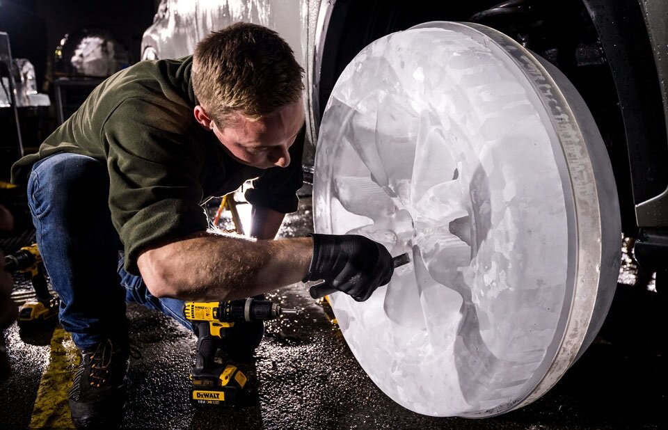 Ледяной автомобиль Бэтмена злодея мистера Фриза больше не фантазия-Lexus создали первый в мире набор рабочих колес и шин, сделанных из замороженной воды Над каждой ледяной шиной работают четыре скульптора и невероятные 36 часов, чтобы завершить процесс Лондонские скульпторы Hamilton Ice взяли первый в мире проект, прикрепив замороженные колеса H2O к Lexus NX, который хранился почти неделю при -30 ° C. Для борьбы с последствиями одной из самых теплых зим на записи, автомобиль Lexus NX был глубоко заморожен и хранился в течение пяти дней при минус 30 градусах Каждая ледяная шина заняла четыре скульптора и 36 часов работы, построенная из лазерных отсканированных конструкций оригинальных колес автомобиля. Сид специальное приспособленное внутри колес льда добавило дополнительный Размер к законченному взгляду Акриловые вставки были добавлены, чтобы убедиться, что автомобиль не рухнул под собственным весом Акрил то что по середине колеса !!! Lexus craft первый в мире набор шин из