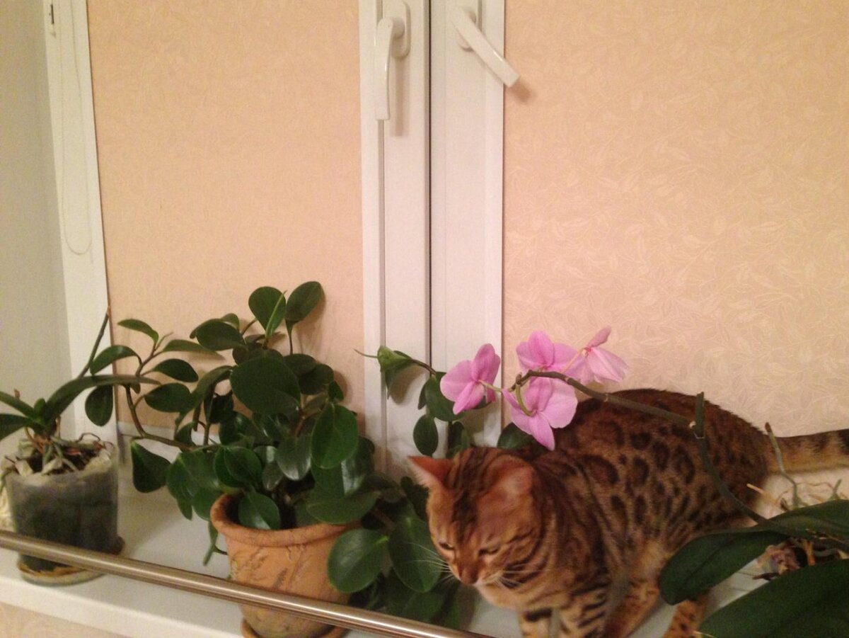 Кошки бывают разные: чёрные, белые, красные (то есть рыжие). Спокойные и буйные. Мою «бурю» зовут Чмоки. Она выросла в питомнике, где кошек и котят ‒ много, а горшков с цветами нет от слова «совсем». Там нет даже занавесок. Она пришла в восторг, когда увидела эти украшающие окна предметы. Занавески! Цветы!! Ура!!! И с распростёртыми лапами кинулась к окну. Впрочем, к шторам и цветам она быстро охладела. Её интересуют голуби, сидящие на соседских балконах. И то ли она такая неловкая, то ли слишком скоростная, но горшки с цветами регулярно падали от её прыжков.