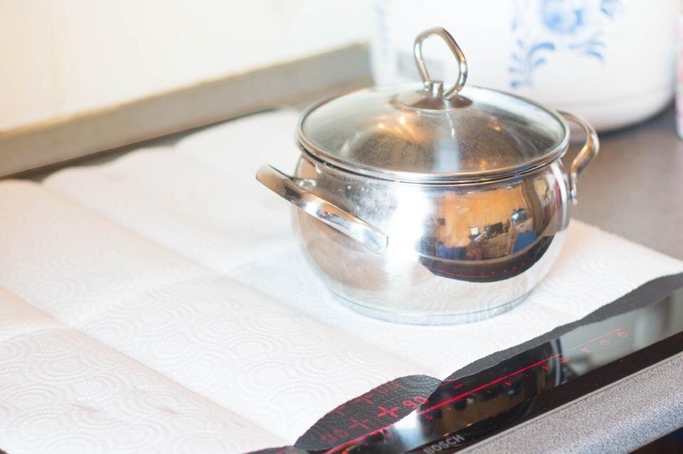 Интернет пестрит рассказами о том, что стеклокерамика сложна в уходе, требует мытья после каждого приготовления пищи, легко царапается дном посуды и может испортиться, если просыпать на нее соль или сахар. Перейдя с конфорок-блинов на индукционную варочную поверхность, я стала искать способы поддержания ее в чистоте, требующие минимальных временных затрат. И нашла! Все оказалось очень просто: Особенностью индукционных плит является то, что нагревается не конфорка, а сама посуда. Именно поэтому можно использовать описанный выше способ, не опасаясь возгорания. Со временем я усовершенствовала этот лайфхак, купив специальные силиконовые коврики. Этот вариант мне понравился больше, потому что: Такой коврик спас мою варочную поверхность, когда я по ошибке стала нагревать пустую кастрюлю. Он начал издавать специфический запах паленой пластмассы и тем самым привлек мое внимание к происходящему. Коврик принял весь удар на себя, почернев в месте перегрева, пострадало дно кастрюли, но конфорка о