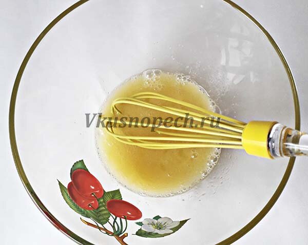 Венчиком смешать молоко, яйцо, масло, соль и сахар.