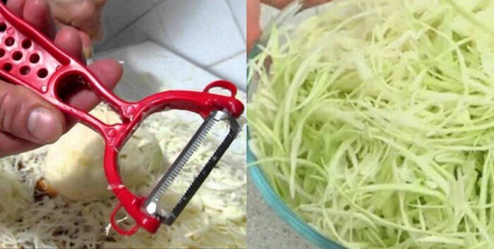 А как вы используете овощечистку? Уверены, что об этих способах использования этого кухонного девайса вы не слышали. А ведь с ними приготовление еды ускорится в разы! Всё ещё просто чистите картошку или морковку? Тогда вы удивитесь, что простую овощечистку можно использовать для того, чтобы… 1. Нашинковать капусту Быстро, тонко – идеально для солений! А ещё гораздо проще и эстетичные, чем с ножом возиться, пытаясь сделать идеальные полоски. 2. Нарезать лук тонкими ломтиками Тонкие кусочки прекрасно сгодятся для салата. А если использовать их в качестве зажарки, то она будет готова значительно быстрее, чем привычные «кубики». 3. Приготовить «сушку» Решили запастись витаминами и самостоятельно высушить овощи или фрукты? Тогда нарежьте их овощечисткой. Тонкие ломтики просушатся за пару дней. 4. Сделать чипсы собственного приготовления Тончайшие ломтики картошки + масло + тщательная прожарка или томление в горячей духовке = хрустящие чипсы без лишней химии и консервантов! Обычным ножом