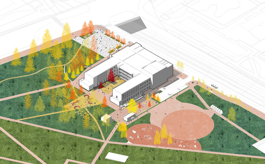 Архитекторы предлагают сделать фасад прозрачным, а на задней стене ДК восстановить мозаичную композицию художника-монументалиста Виктора Федорова «Посадим сады». Во дворе — собрать кафе, зимний сад, коворкинг, лекторий и установить летнюю площадку для кинопоказов. Авторы концепции также хотят усилить связь Дворца культуры с «Сосновой рощей», использовать инфраструктуру парка и организовать там четыре площадки для отдыха: городскую ярмарку, общественный сад, событийную площадку и зону с гамаками и шезлонгами.