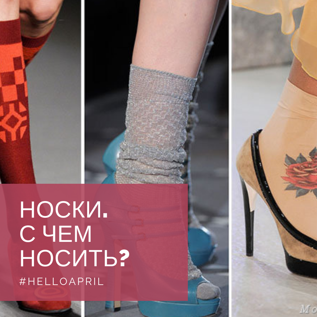 Женские носки вышли из подполья (или из подподолья 😊) на свет Божий. И мир поделился на тех, кто «ах, какая прелесть» и тех, кто «что за ужас-ужас-ужас». Вы на какой стороне? Может вы просто не умеете их готовить? 😊 Тогда мы идем к вам 😊 Как носить носки в этом сезоне? Сохраните информацию, она вам пригодится: Туфли можно носить с носками любой длины. НО! При составлении образа учитывайте следующие параметры: Если у вас невысокий рост, то носки надо выбирать в цвет юбки или в цвет туфель. Носки в тон к обуви – самый безобидный и беспроигрышный вариант. Не укорачивает ногу, выглядит как ботильон Носки в цвет юбки так же не укорачивают ноги. А еще такие носки стоит выбирать тем, у кого не очень изящная икра. Но в таком случае носки должны быть не очень плотные. Белые носки носим со всем – с туфлями, кроссовками, ботильонами. Контрастное сочетание цвета носков и обуви – для высоких и смелых. Но не забудьте повторить этот цвет в какой-нибудь детали в образе, чтобы носки