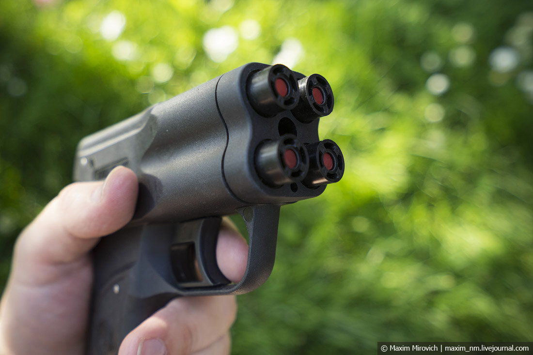 Этот пистолет, как вы видите, стреляет перцем. А именно - он использует перцовые БАМы (Баллончики Аэрозольные Малогабаритные) калибра 18х55 Это маленькие баллончики, содержащие в себе жгучую смесь перца и слезоточивого газа. Их эффективность оспаривать не приходится, состав действительно "ЗЛОЙ" Характеристики Премьер - 4 Калибр: 18х55 (Электровоспламенение)