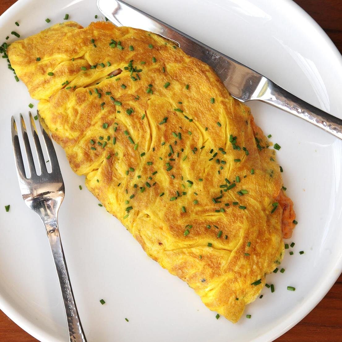 Снимаем крышку, добавим несколько капель масла к краям омлета и готовим еще 5–7 мин.