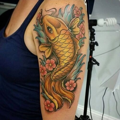 Декоративная аквариумная рыбка карп является почитаемым символом в восточных странах, поэтому тату Японский карп можно довольно часто встретить на теле местных жителей. Особенно большая роль карпу отводится в культуре Китая и Японии. Так, китайцы считают карпа ни много ни мало, а императором среди обитателей рек. Существует даже легенда, которая гласит, что если эта юркая рыбка сможет преодолеть Желтую реку и доплыть до Врат Дракона, то обернется могущественным драконом. В Японии же карпа почитают за его отвагу в борьбе за собственную жизнь и спокойствие во время неизбежной смерти. Что значит японский карп тату? Символизм, который приписывают карпу, во многом обусловлен его повадками, поведением и инстинктами в естественной среде обитания. Так, это отважный, смелый, мудрый и в некоторой степени хладнокровный обитатель водных просторов. Такая татуировка подойдет всем тем, кто хочет подчеркнуть в себе эти качества. Однако тату японская рыба имеет различные значения в разных религи